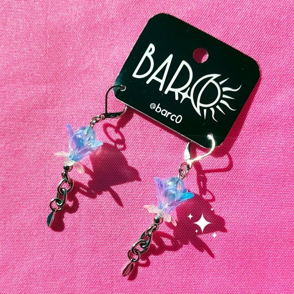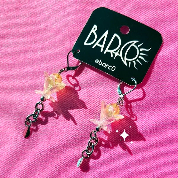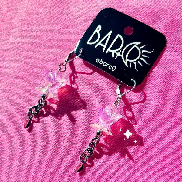 Aros con dijes de acrilico tornasol, dije, cadena y brisuras de acero quirurgico