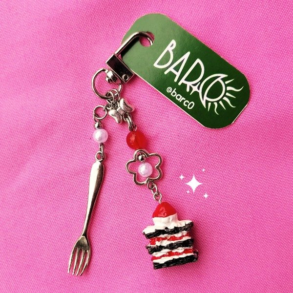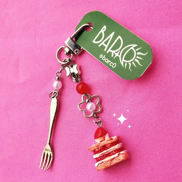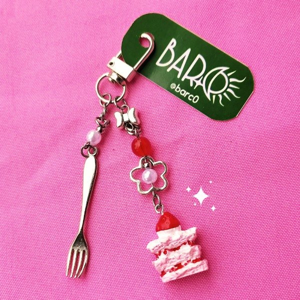 Llavero listo para comerse. Dije de pastel en resina, dijes de fundicion y cuentas perladas tornasol